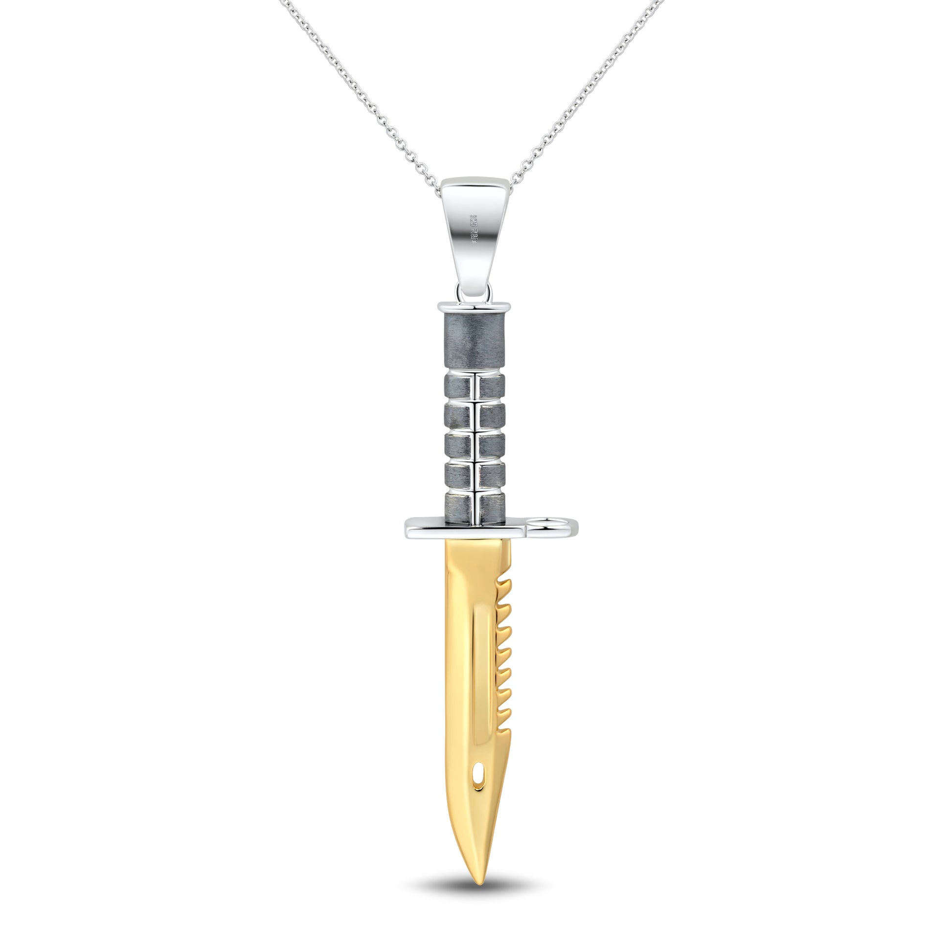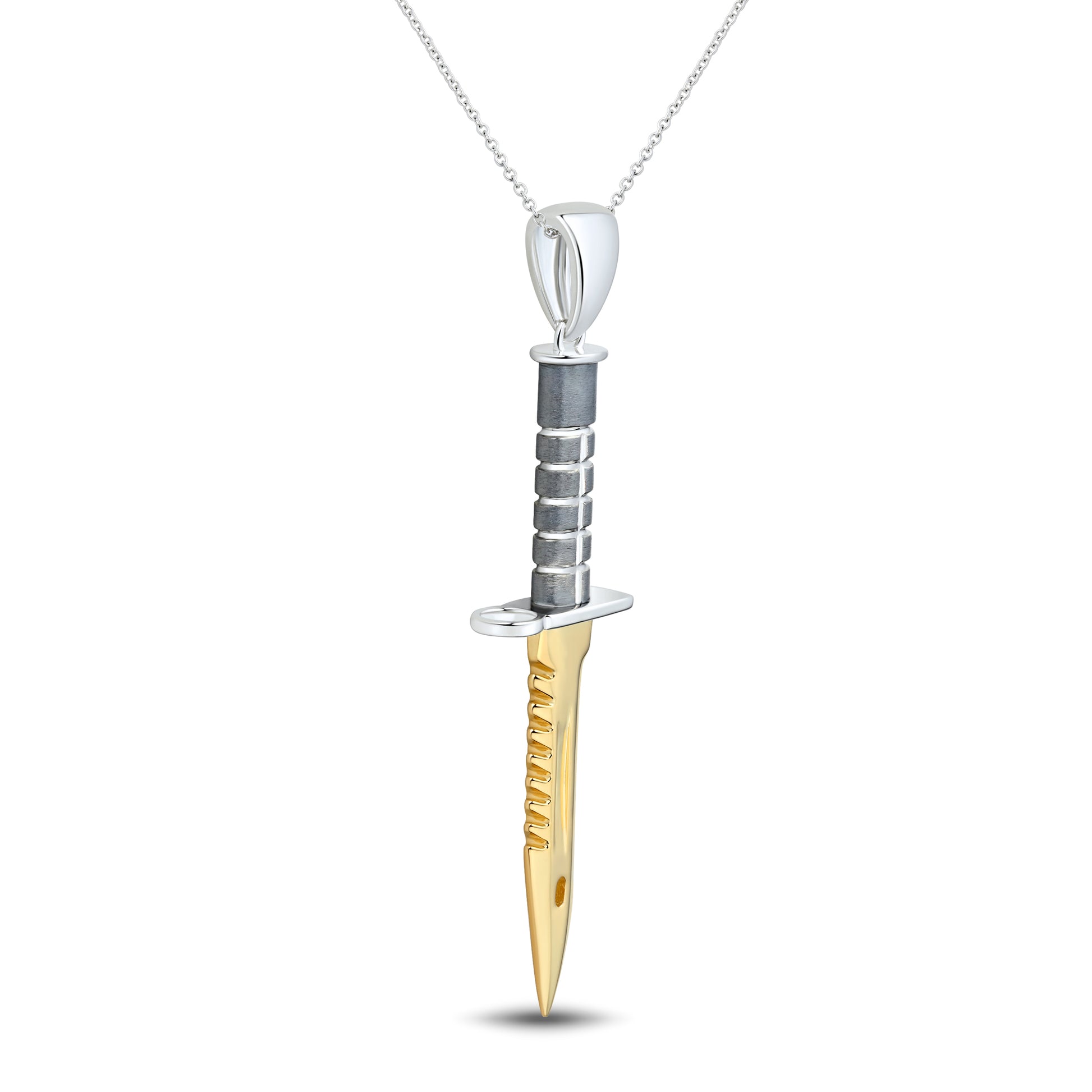 Bayonet sterling silver knife pendant with brushed gunmetal handle finish and high polished 18kt-gold plated blade.
