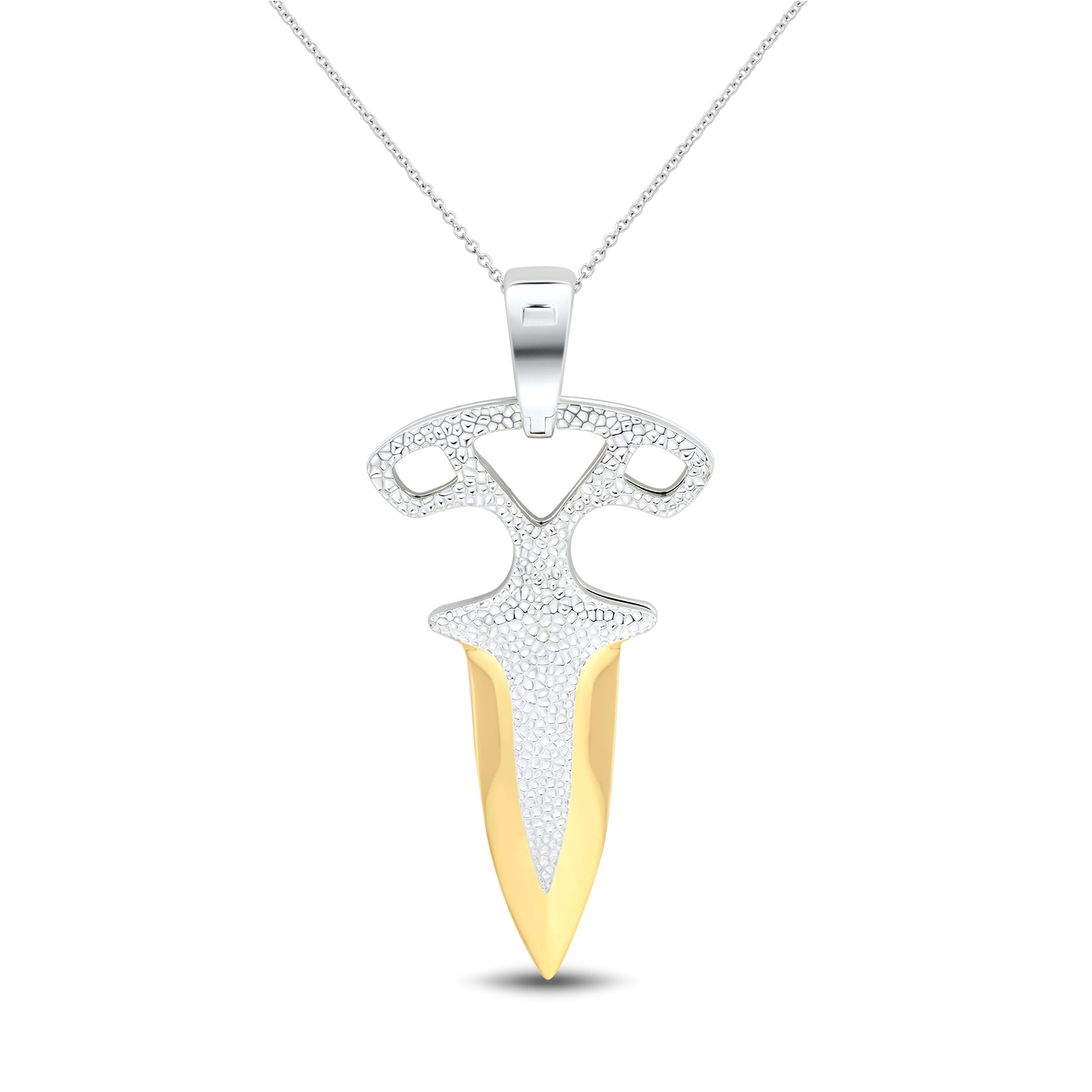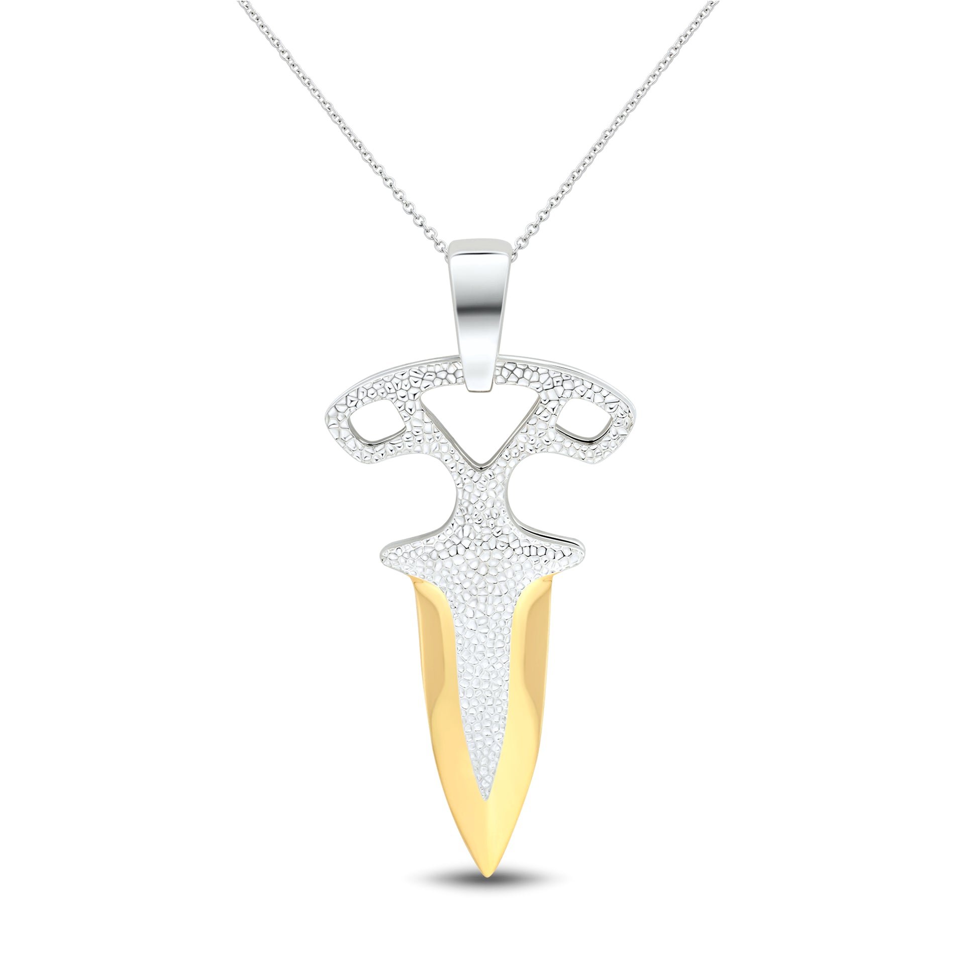 Dual magnetic sterling silver shadow daggers knife pendant with hammered finish handle and high polished 18kt-gold plated blade.
