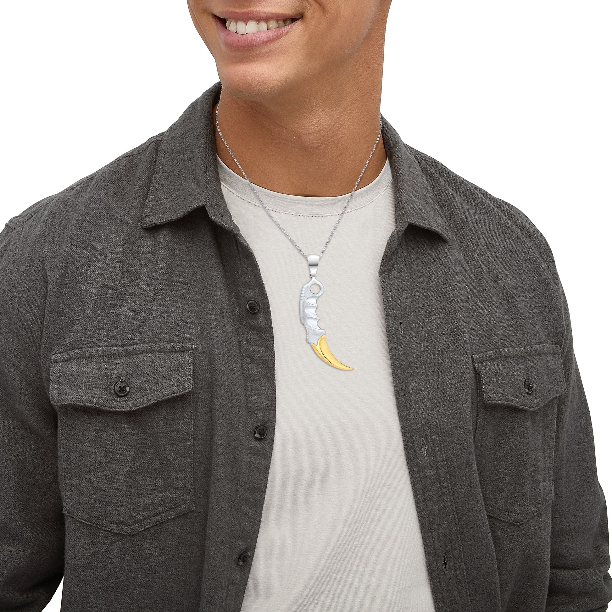 Karambit sterling silver knife pendant with sandblast handle and high polished 18kt-gold plated blade.