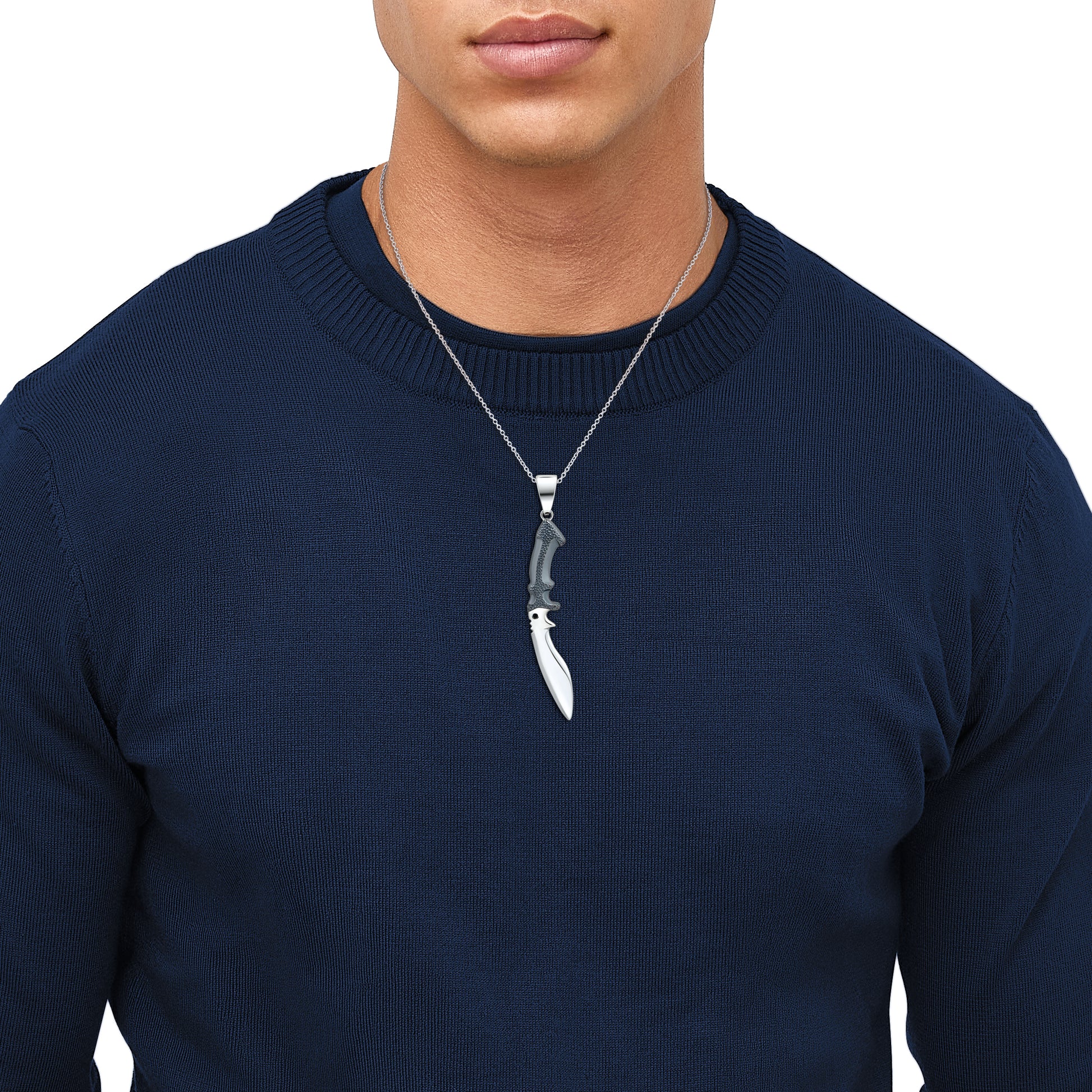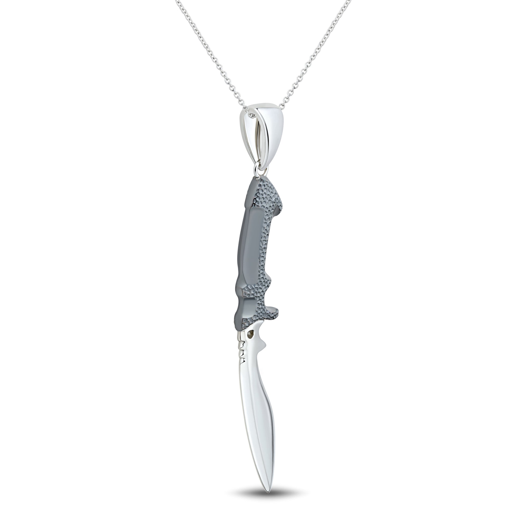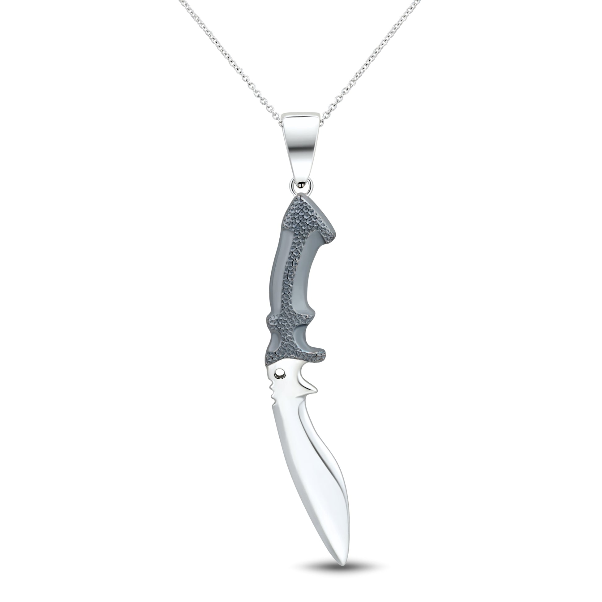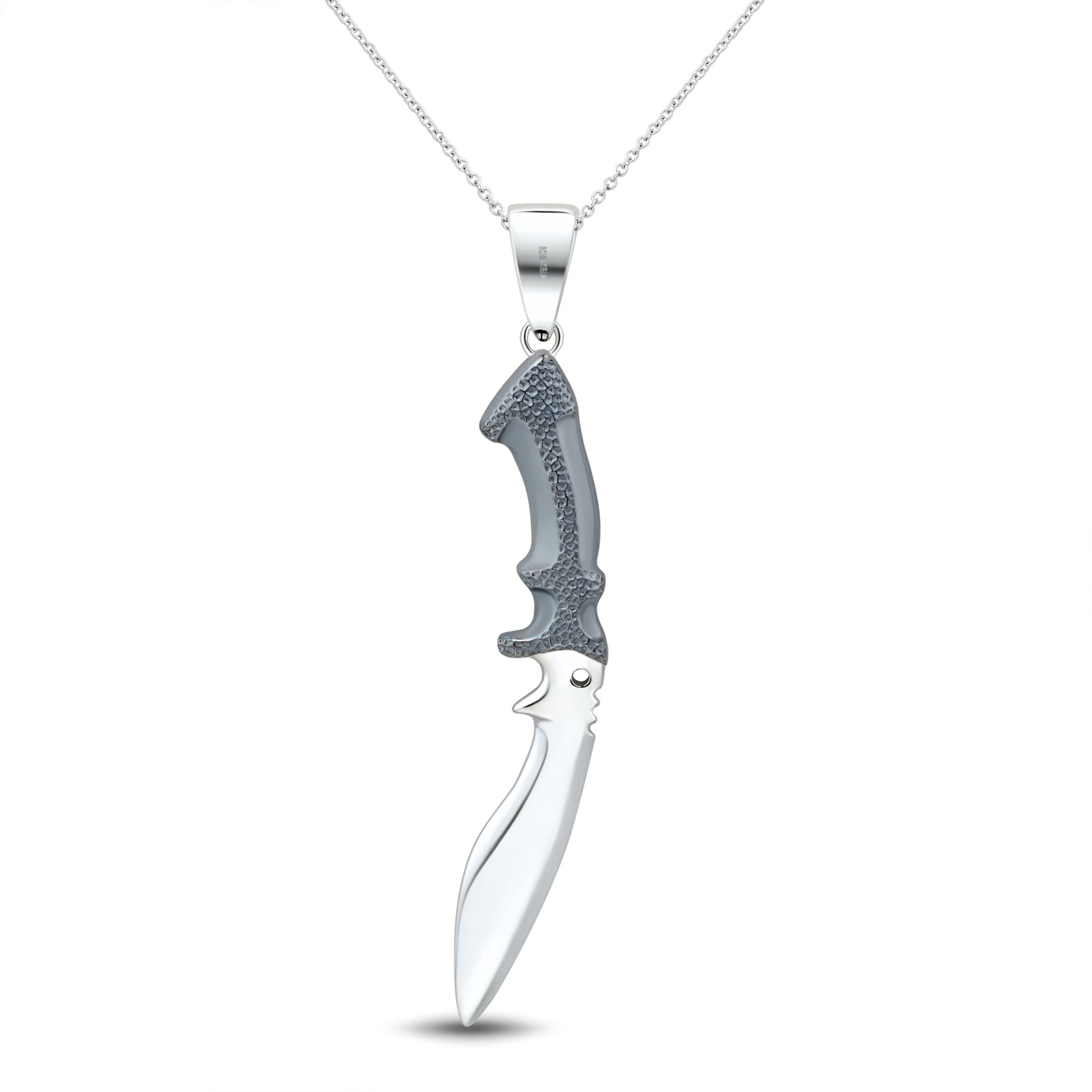 Kukri sterling silver knife pendant with hammered gunmetal handle with high polished blade.