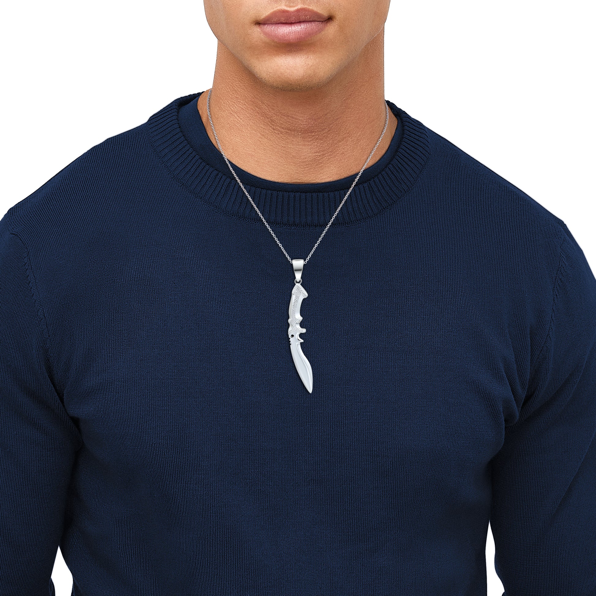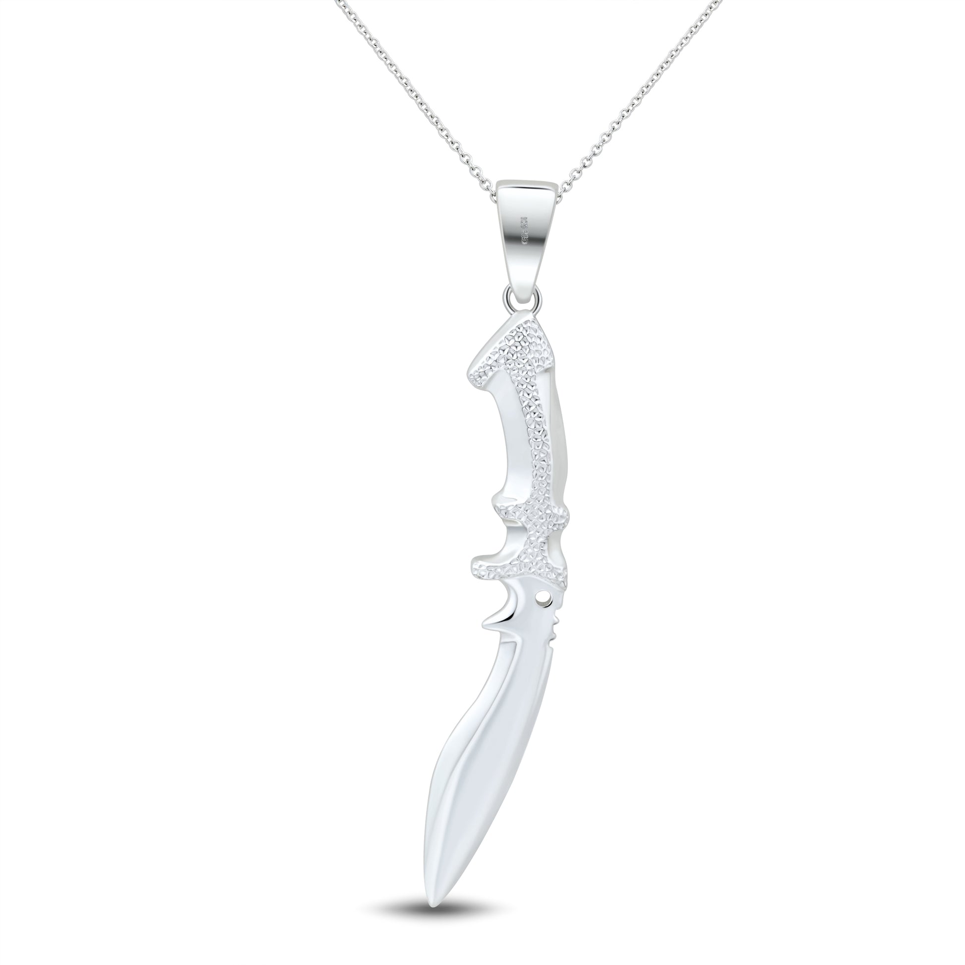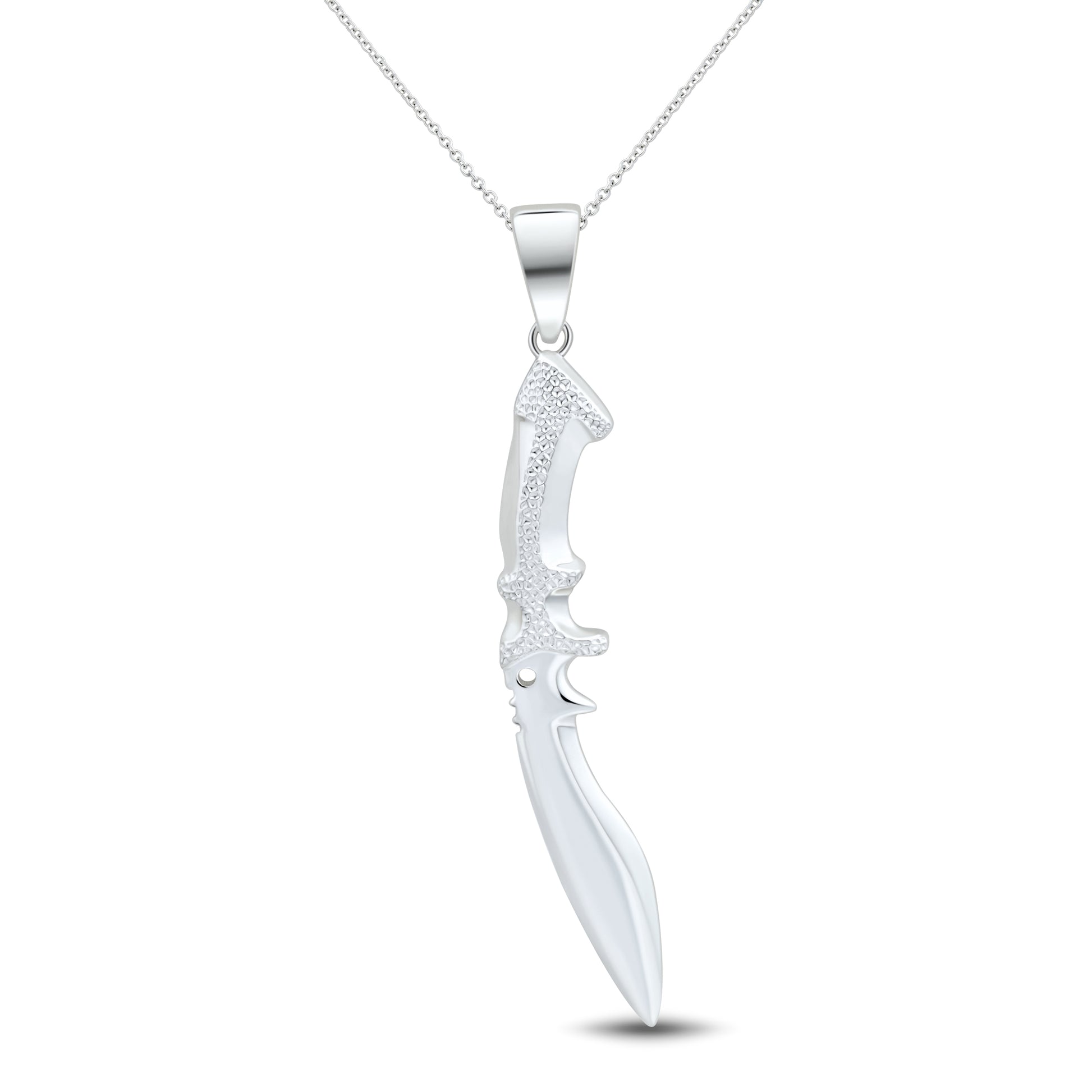 Kukri sterling silver knife pendant with hammered handle and high polished blade.