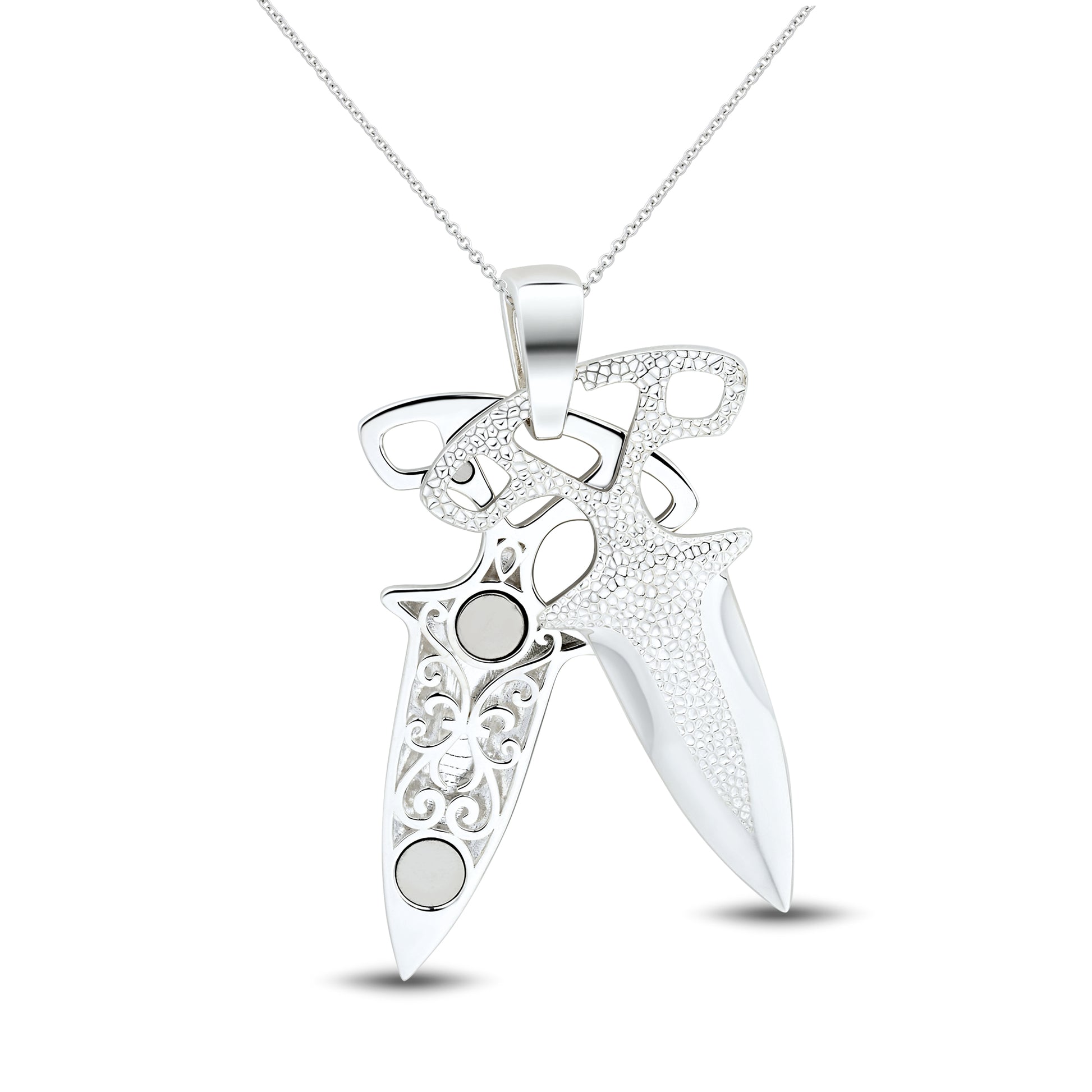 Dual magnetic sterling silver shadow daggers knife pendant with hammered handle and high polished blade.